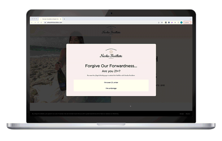 The client specifically had a callout to make the branding playful and exciting, when accounted for the incorporation of illustrated elements in the overlay/image and Pop, Fizz, Clink! In addition for the website, the client wanted a more specific age-gate than yes/no, so I worked to use Java/CSS/HTML to create a functioning age gate that booted the user out of the site if they didn’t enter a birthdate corresponding with legal age.